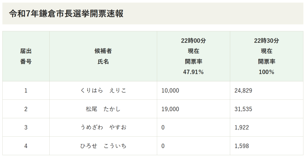 🗳️ 2025年鎌倉市長選挙【開票速報】